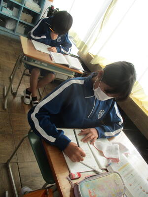 くろしお学級では、前学年の復習を行っていました。2人ともとてもよく覚えていました。