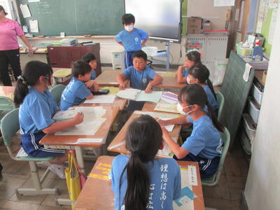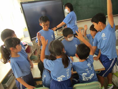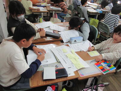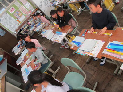 今日の授業中の様子です。あちらこちらで友達同士の学び合いが見られています。