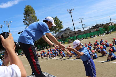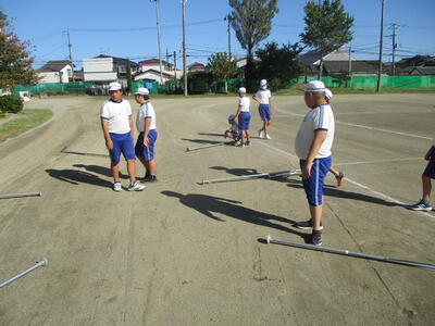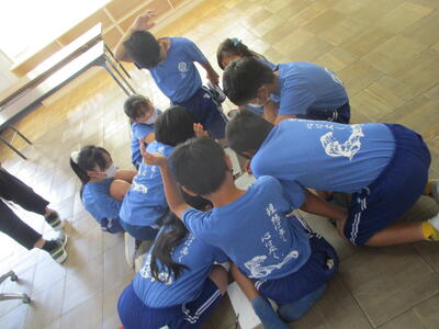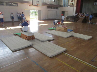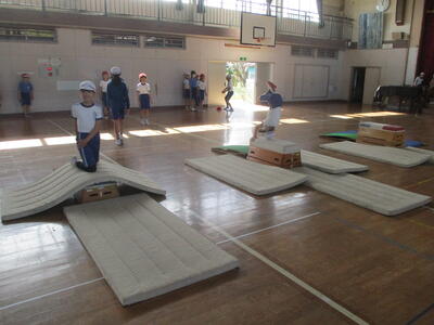 3年生は体育科。線からはみ出さないように、バランス良く歩けるかな?
