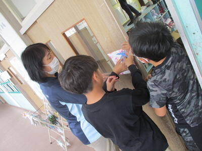「今、題名考えてるんだよねえ・・・。」2年生は絵を仕上げていました。