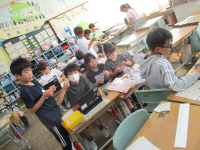 1年生は1CT支援員さんの協力も得ながら、あさがおについての発表資料の作成、その後発表。