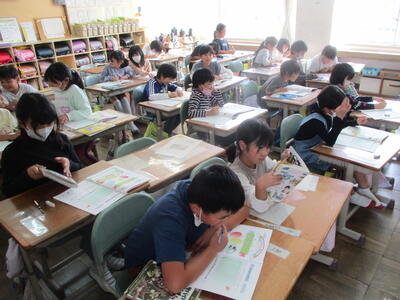 4年生は音楽科。「ソーラン節の音階を使って、ふしをつくろう」の学習でした。ちょっとむずかしいなあ・・・。