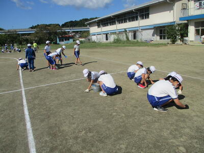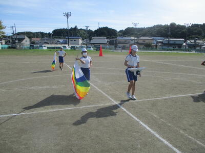 5・6年生達は、運動会成功のため、自分の出場種目に全力で取り組むだけでなく、裏方の仕事でみんなを支えます。