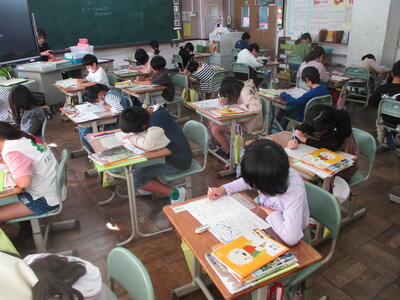 昨日は、読み聞かせボランティアの石川様、遠藤様に読み聞かせをしていただきました。