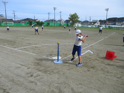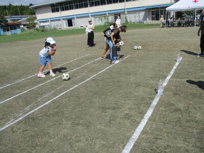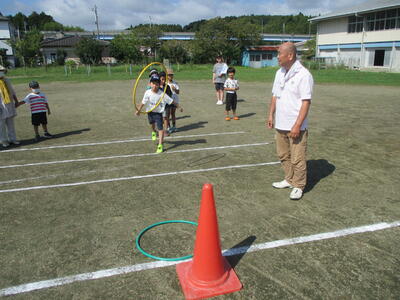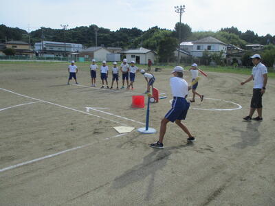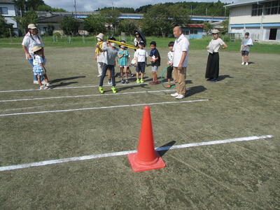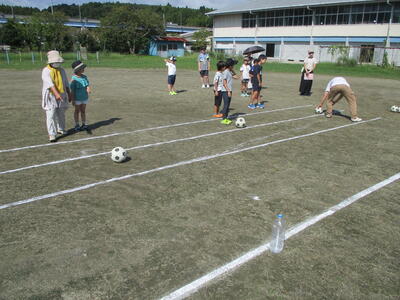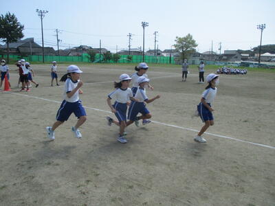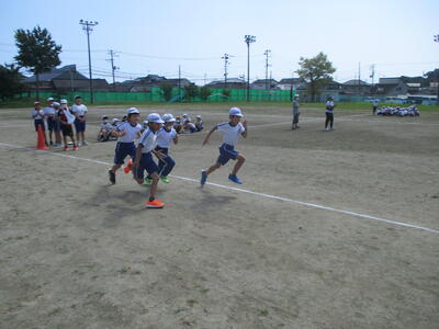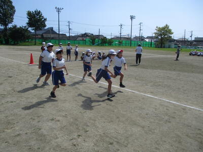 3・4年生は合同で体育。運動会に向けて、100mのタイムを測定中です。