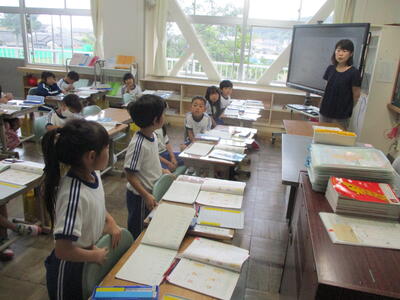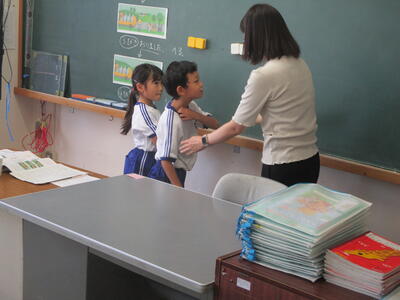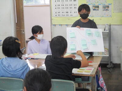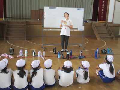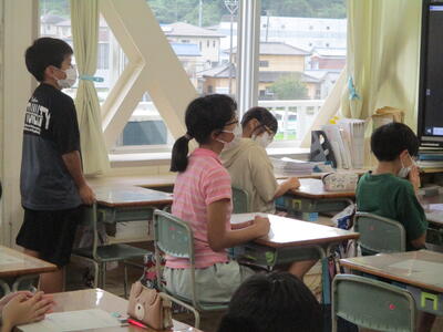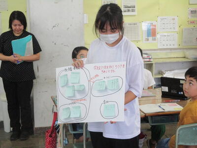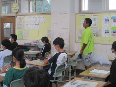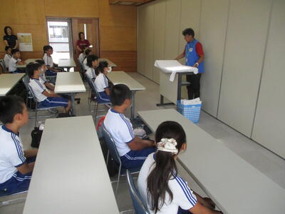 9月20日(火)には、「久之浜・大久地域サポートチーム」の遠藤様、栗田様に来ていただき、久之浜一小とサポートチームのつながりについて教えていただきました。
