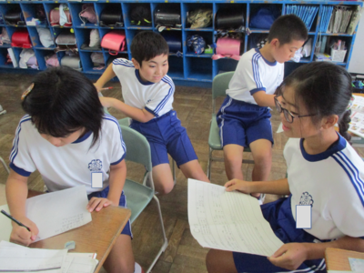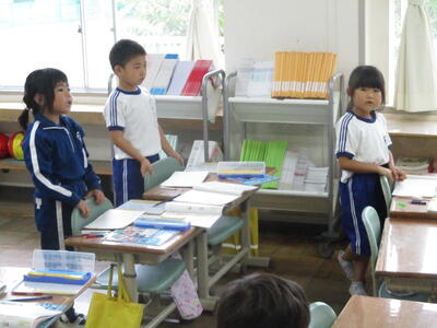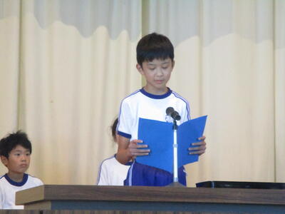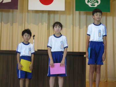 次に、「夏休みの思い出と2学期がんばりたいこと」について、代表児童3名が発表しました。