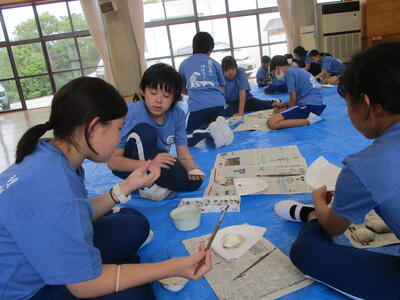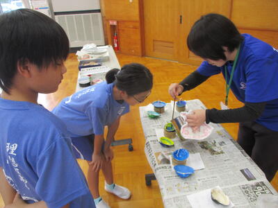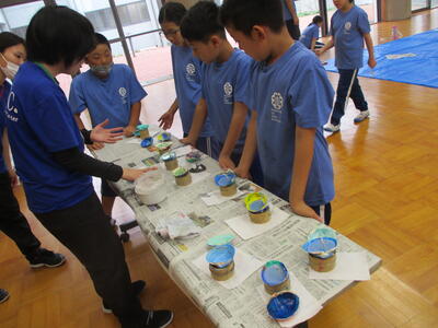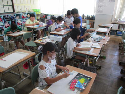 美術館では、班ごとに絵を鑑賞し、それを自分なりの作品に仕上げるアート体験をしました。