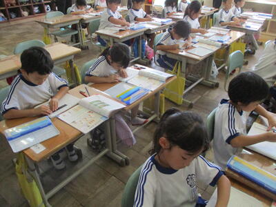 2年の木村君は、1番心に残ったものは仙台の七夕祭りだったこと、2学期がんばりたいことは漢字と算数で、1枚でも多くテストで100点を取れるようにがんばりたいと発表しました。