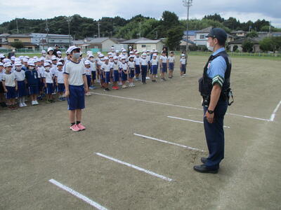今日の2校時に交通教室を行いました。今回も久之浜駐在所の前田様に、「安全な歩行について」と「自転車の安全な乗り方について」をご指導いただきました。