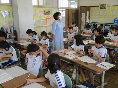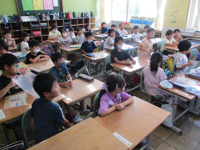 映像などを用いて、とても楽しく分かりやすく教えていただきましたので、1年生もとても喜んでいました。
