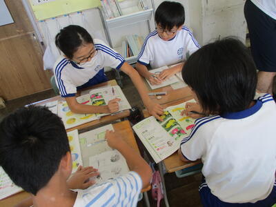 4年生は、国語科「パンフレットを読もう」の学習でした。