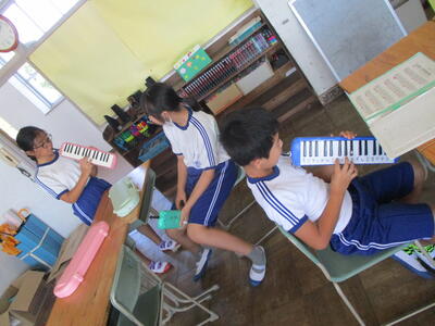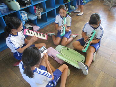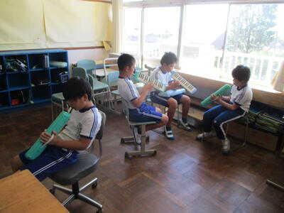 3年生は、音楽科でリコーダーの演奏中。音の長さに注目しながら、きれいな音を響かせていました。