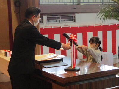 令和4年度修了式で修了証書の授与を行いました。どの学年も立派な態度で、子ども達の1年間の成長を実感しました。(^^)