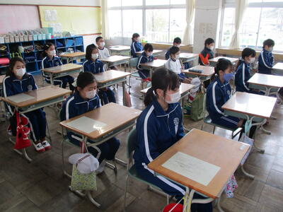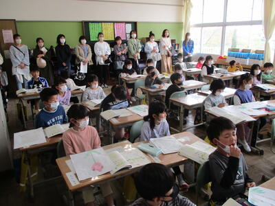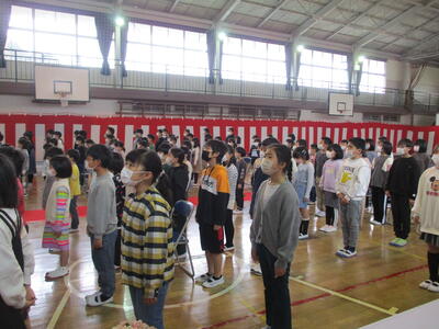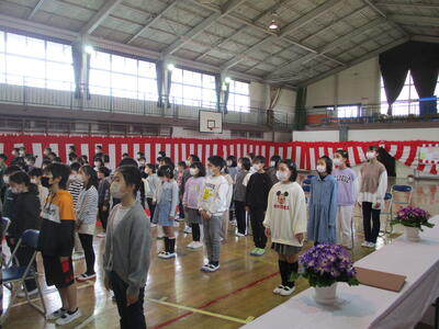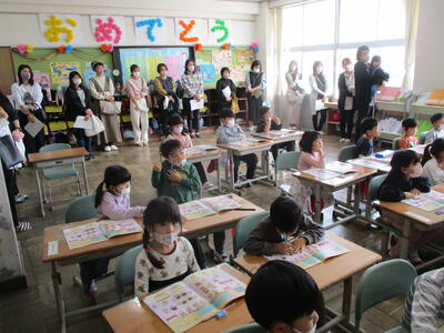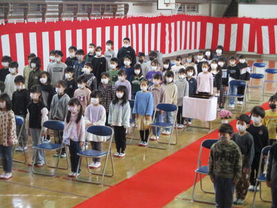 児童の皆さん、入学・進級おめでとうございます。キラキラした目をしながら、子ども達が式に出席していた