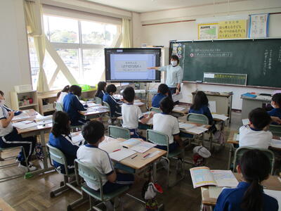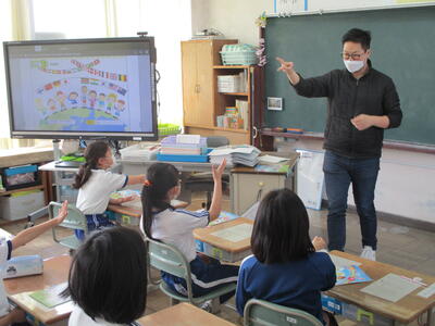 3・4年生の外国語活動、並びに5・6年生の外国語科を中心に、担任と一緒に授業をしていただきます。