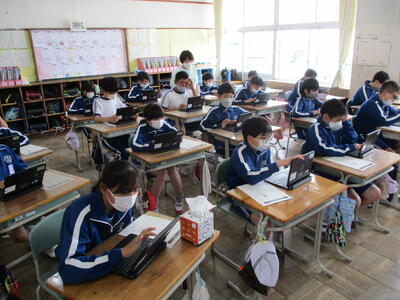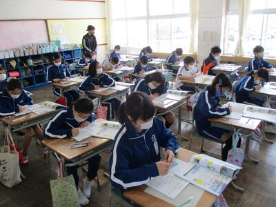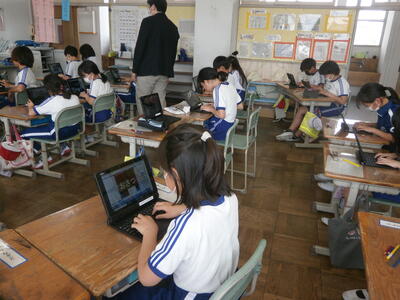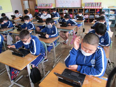 また、6年生は、18日(火)実施予定の全国学力学習状況調査の質問紙に、自分のタブレットを使ってオンライン