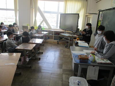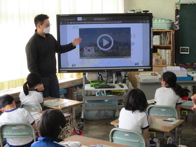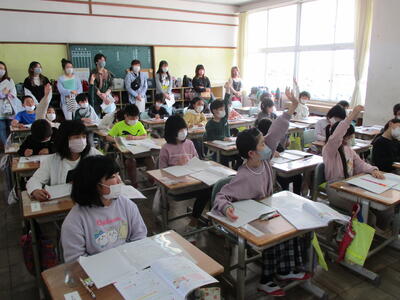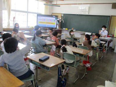 3年生は、英語でのじゃんけんの仕方や外国の国旗、あいさつの仕方などをとても楽しそうに学んでいました。