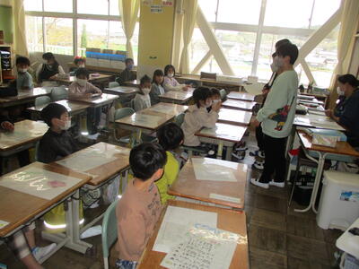 担任から文字だけでなく、姿勢などもほめられて、得意満面の一年生達でした。
