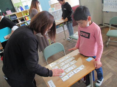 昨日は「あいうえお」を、担任と一緒に丁寧に書く姿が見られました。