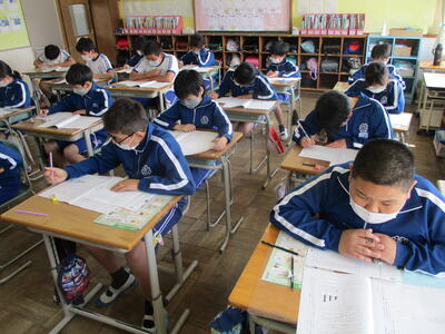 今日は6年生が、全国学力学習状況調査に取り組みました。