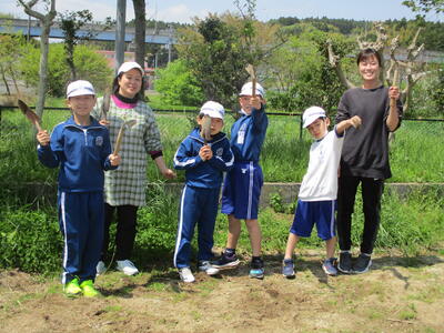 くろしお学級のみんなで、畑周辺の草をむしったり、土を耕したりしました。