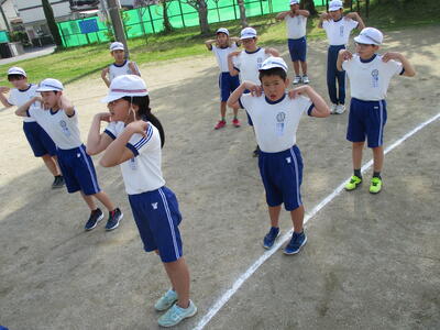 6月20日(火)の陸上大会に向けて、6年生が陸上練習を始めています。