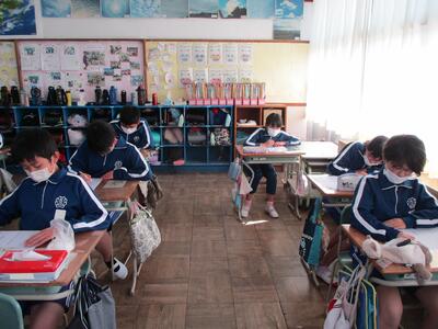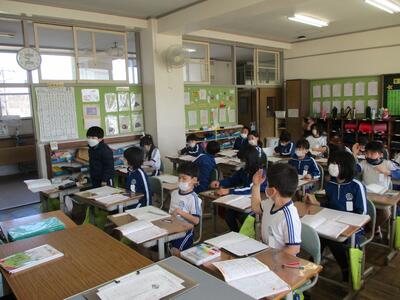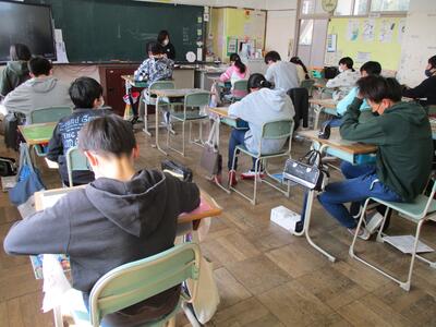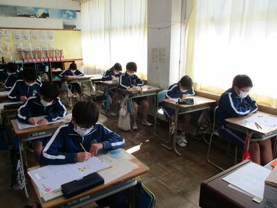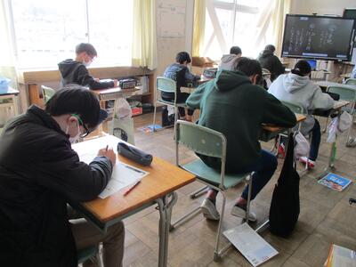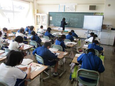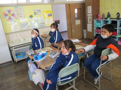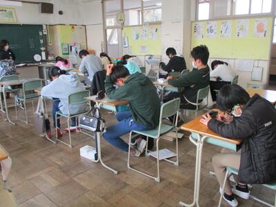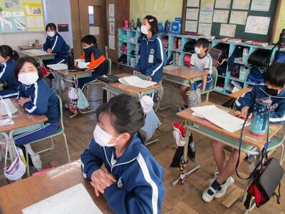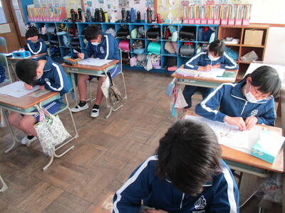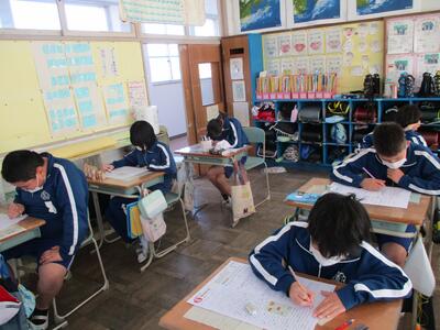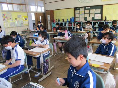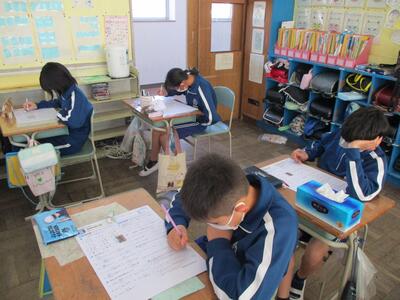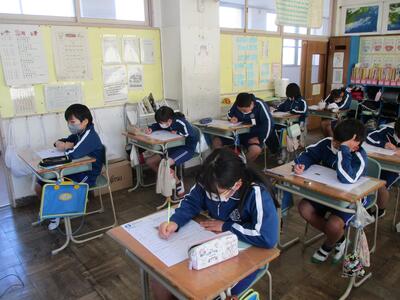5年生は国語の学年末テストでした。みんながんばって考えていました。(^^)