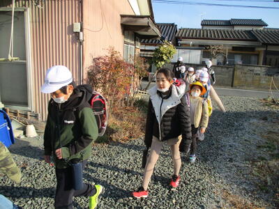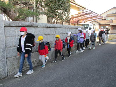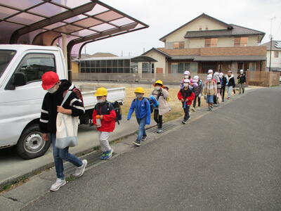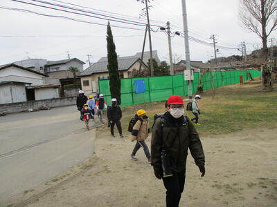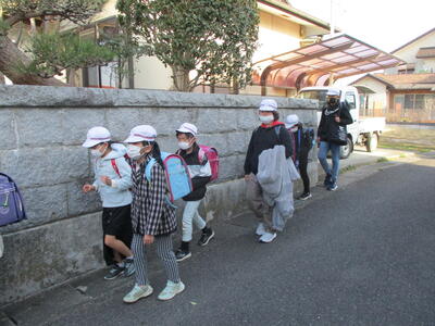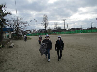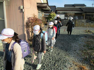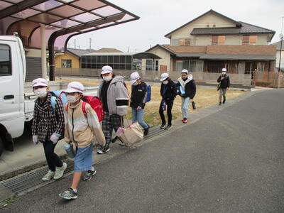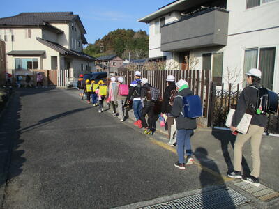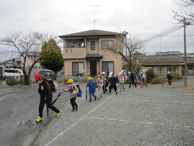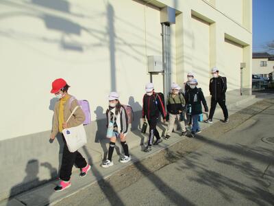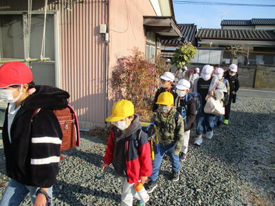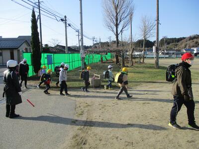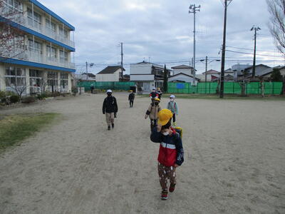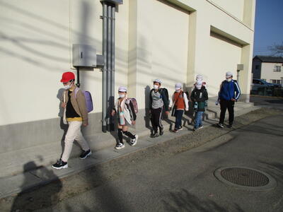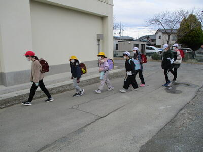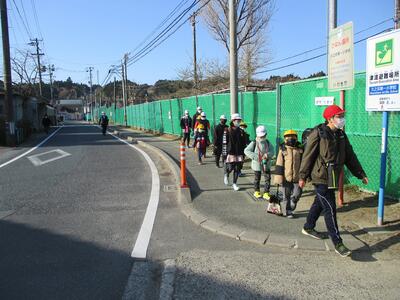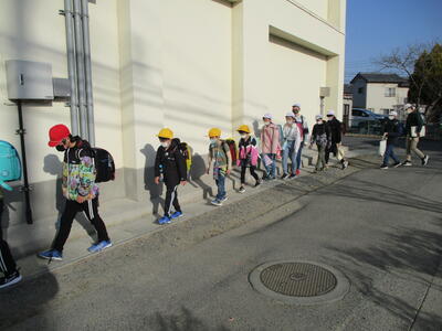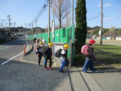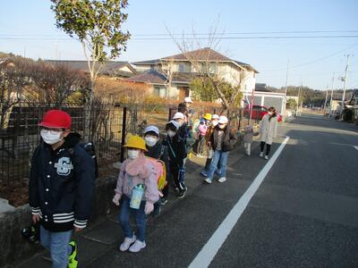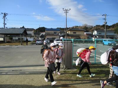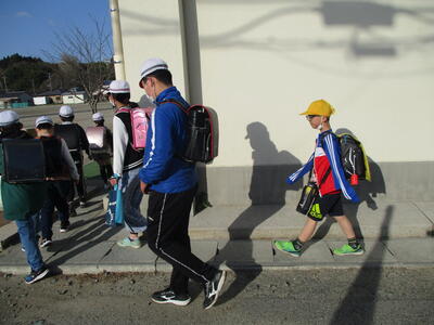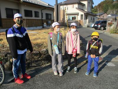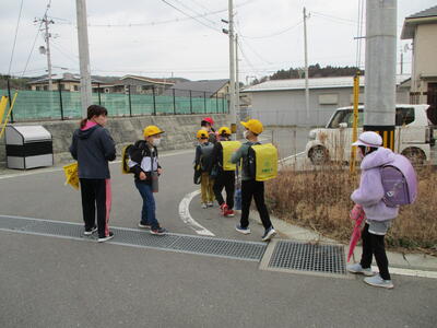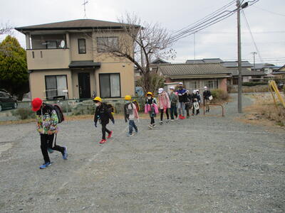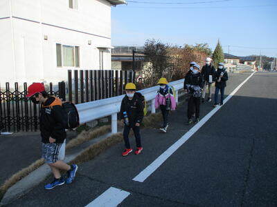 学校の北側と東側から登校してくる班の皆さんはきちんと整列して安全に登校しました。今日は6年生の最後の集団登校でした。6年生の皆さん、最後まで下級生の面倒をしっかりと見てくれてありがとうございました。m(_ _)m