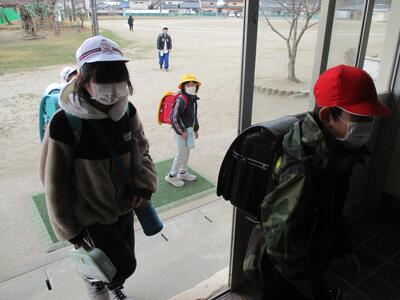 穏やかに晴れた朝。今日も子ども達は皆さんに見守られて安全に登校してきました。いつもありがとうございます。m(_ _)m