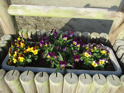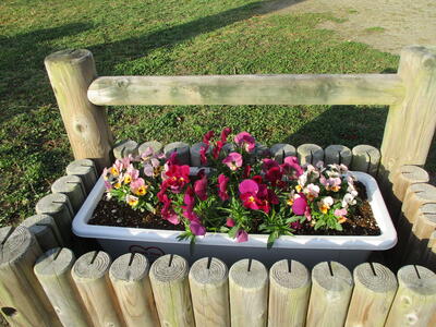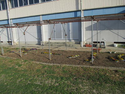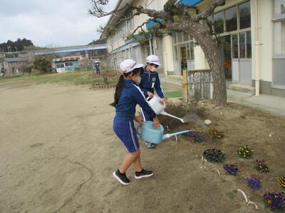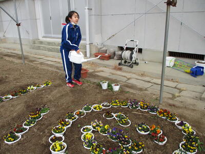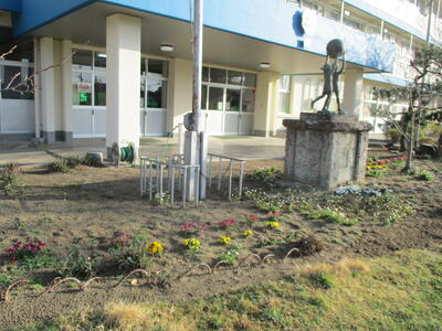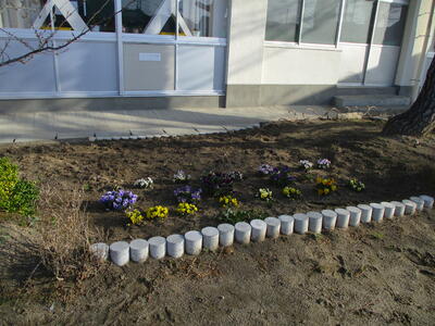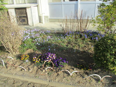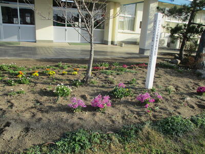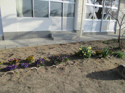 校庭の花が色とりどりに花を咲かせました。桜の花もほころび始め、明日の卒業式をお祝いしてくれているようです。(^^)