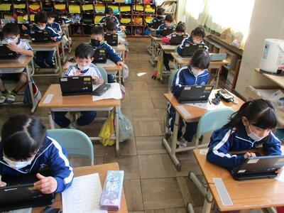 5年生もポケモンで学年のまとめをしました。5年生は画面に出てきた質問を読んでそれに答えます。楽しく学習できました。(^^)