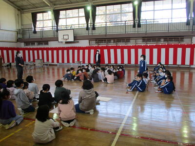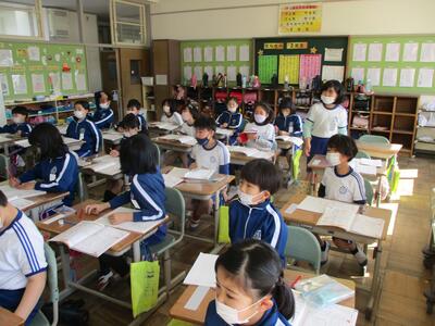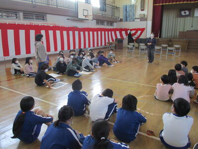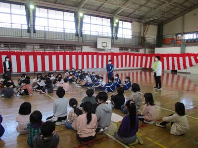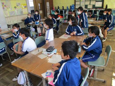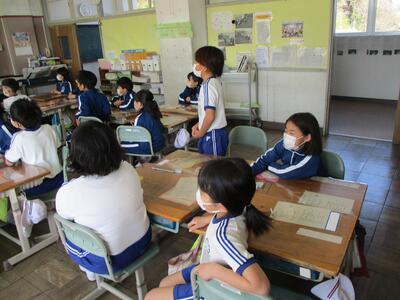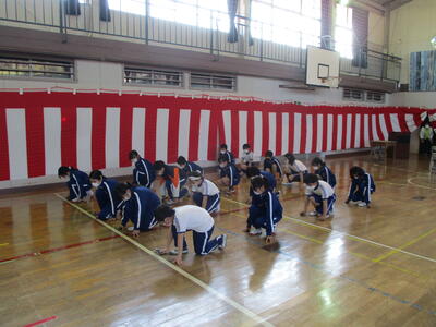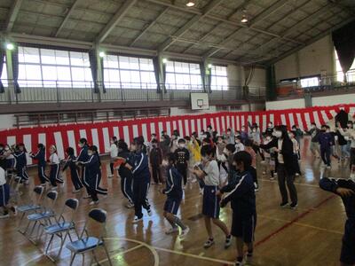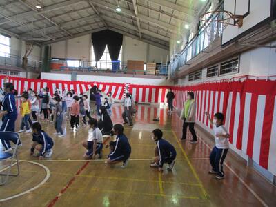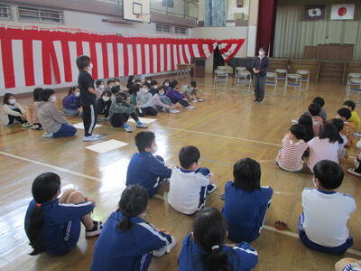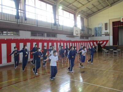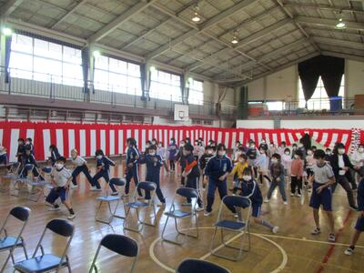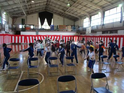 4年生は、音楽科の祭りの音楽と体育科の表現運動のまとめとして「よさこいソーラン」を覚えて発表してくれました。振り付けをしっかり覚え、とてもかっこよく踊る姿に見とれてしまいました。最後には2・3年生も一緒になって踊ってみました。見よう見まねでかっこよく踊っている子がたくさんいました。とても盛り上がりました。(^_^)v