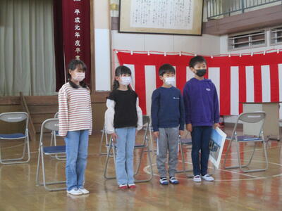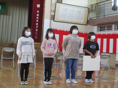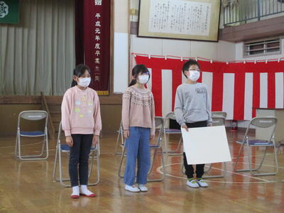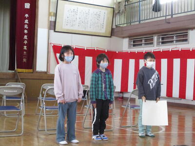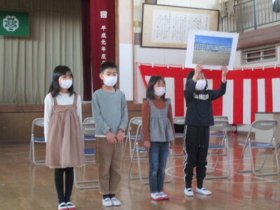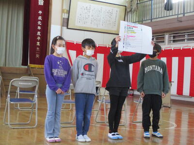 3年生の「学校自慢」は5つの班に分かれて班ごとに学校の自慢できることを発表しました。国語科で学習した文章表現で、写真や表を使ってとてもわかりやすく発表することができました。一人一人話すスピードや声の大きさ、間の取り方などが工夫されていてとても上手でした。2年生と4年生からもとてもわかりやすい発表だったという感想が聞かれました。すばらしかったです。(^_^)v