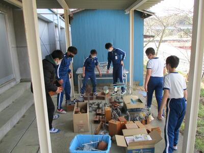 6年生が愛校活動で使用済みのインクや理科準備室の古い教材を片付けてくれました。とても助かります。ありがとう。(^^)