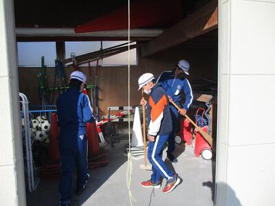 SSS(スクールサポートスタッフ)さんに学校の西側のフェンスを整備していただきました。倒れたフェンスに、雑木や雑草がひどくからまってどうしようもなくなっていたところをきれいにしていただき、本当にありがとうございました。m(_ _)m
