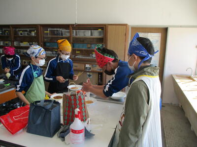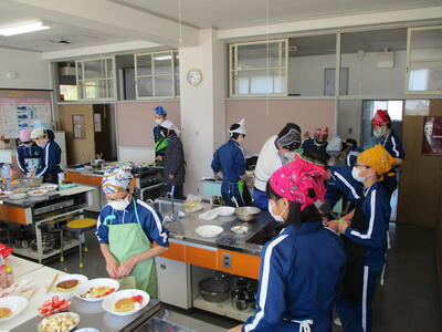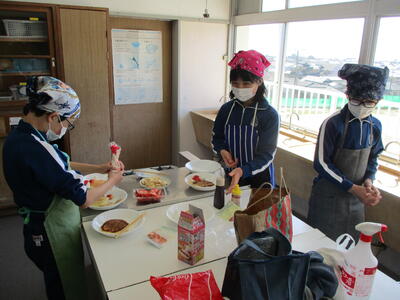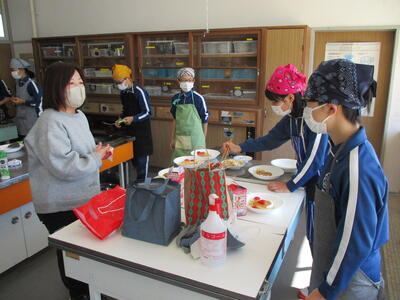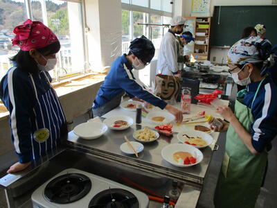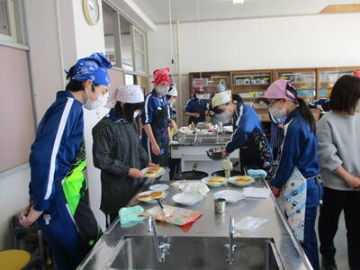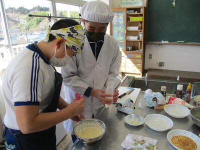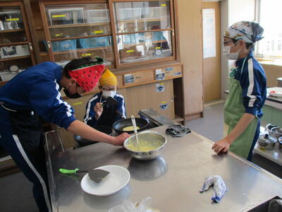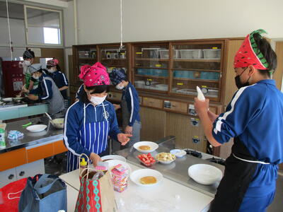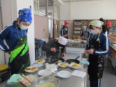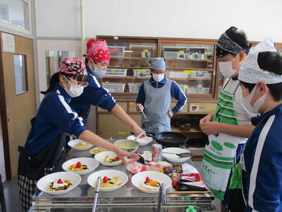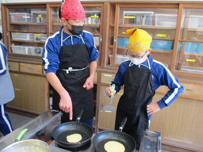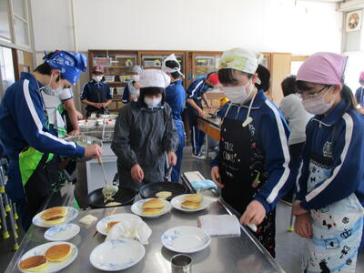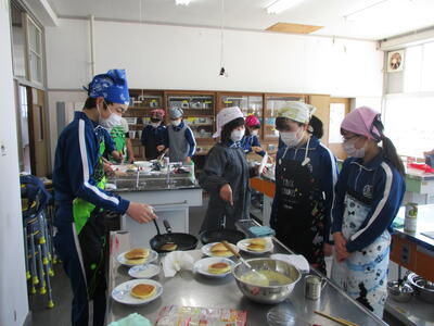 6年生は家庭科の授業のまとめとして小学校最後の調理実習を行い、パンケーキを作って先生方にごちそうしてくれました。(^^)