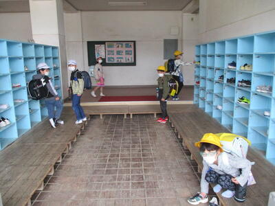 子ども達は新しい班長さんでの登校も慣れてきて、きちんと整列して登校していました。(^^)