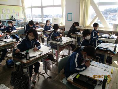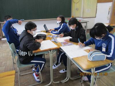 6年生の総合では、班ごとの話し合いが徐々に具体的になってきているようです。2月5日(日)に「久之浜・大久ふれあい館」で行われる「青少年育成意見発表会」での発表に向けて、がんばってほしいと思います。(^^)