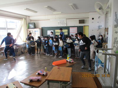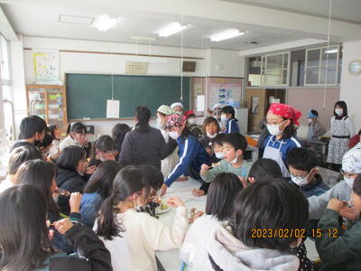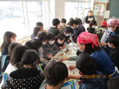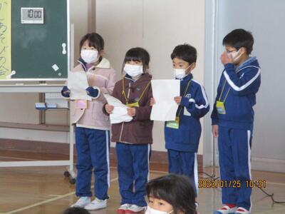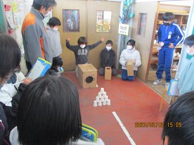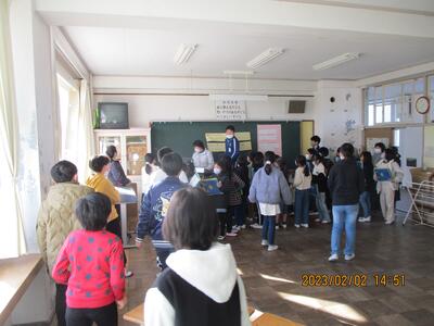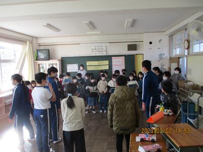 「鬼は外、福は内」と元気よく豆をまいてくれたので、久之浜一小にもたくさんの福が訪れることと思います。\(^_^)/
