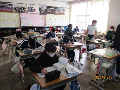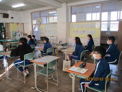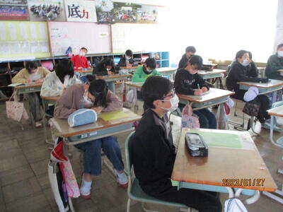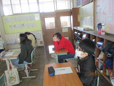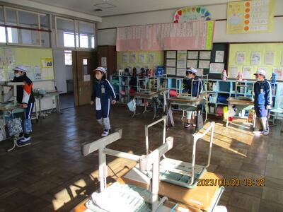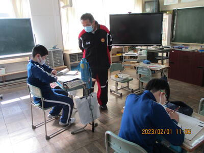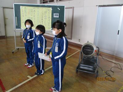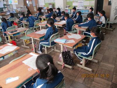 1・2・3年生の3校時目の授業の様子です。寒さに負けずがんばっていました。(^^)
