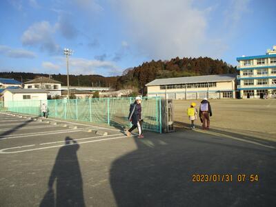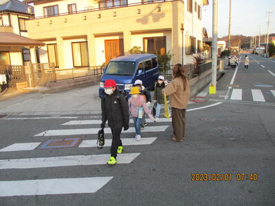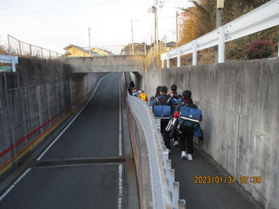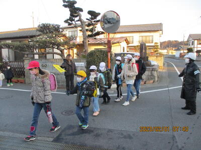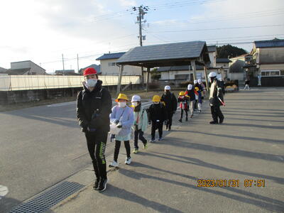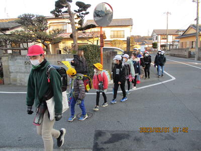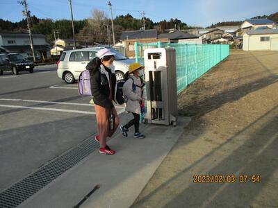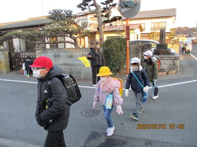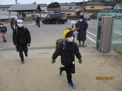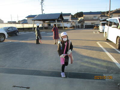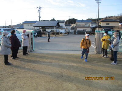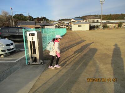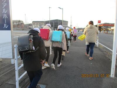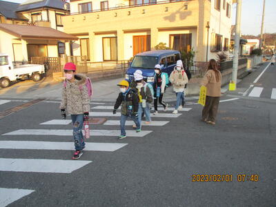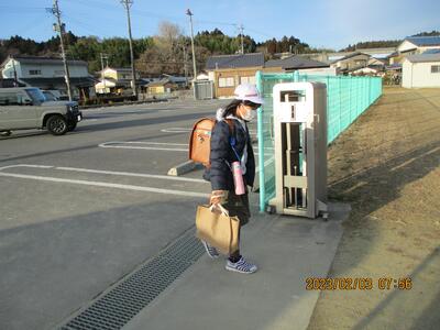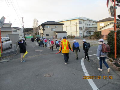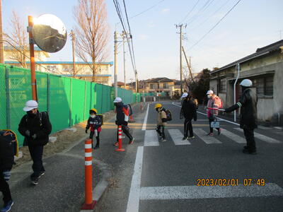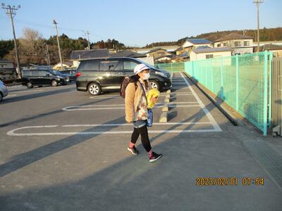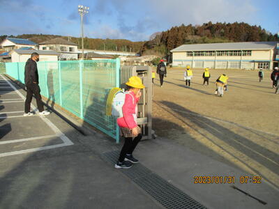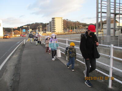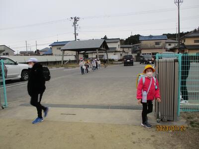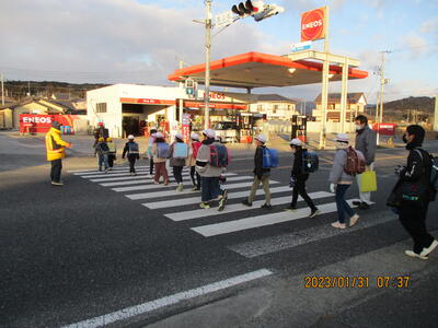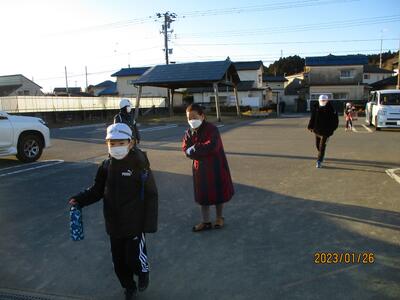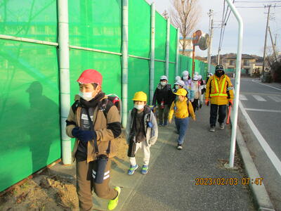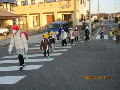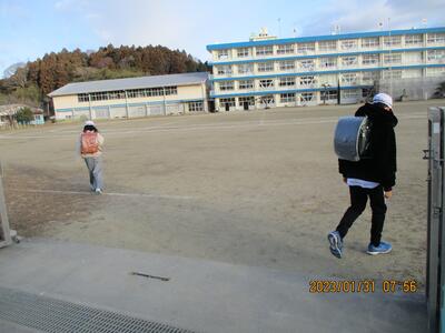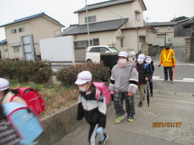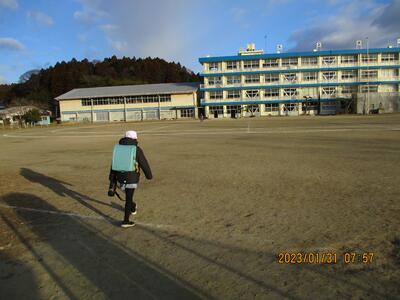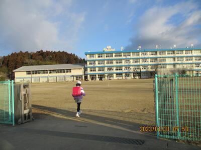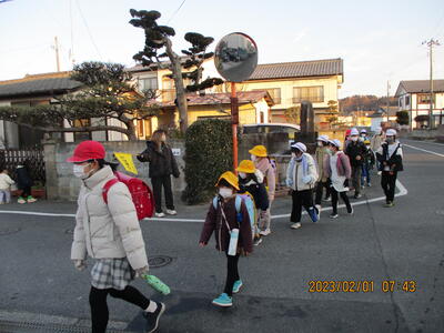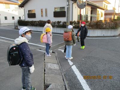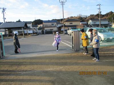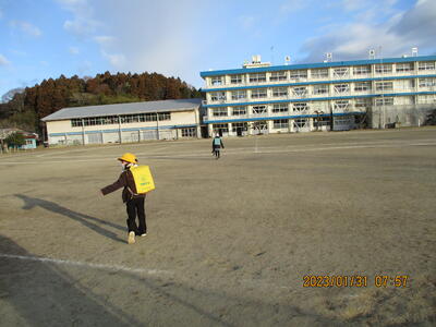 今日は立・川田方面の登校の様子です。すれ違う中学生がしっかりとあいさつをしてくれました。今日も地域や保護者の皆さんに見守られ、子ども達は安全に登校してきました。今日で1月も終わりです。2月は暖かくなるといいですね。(^^)