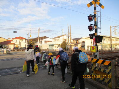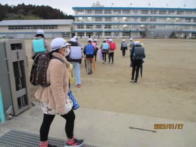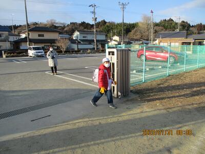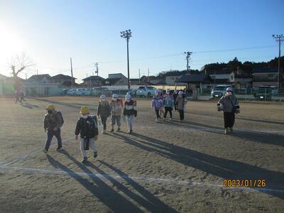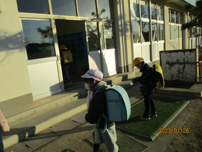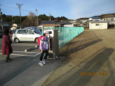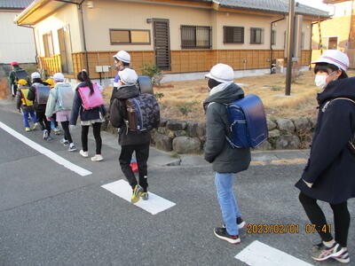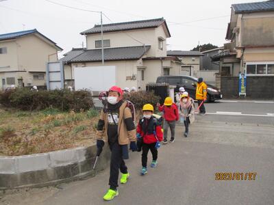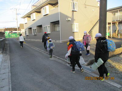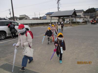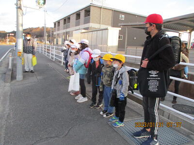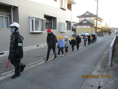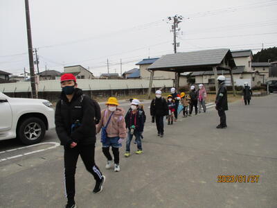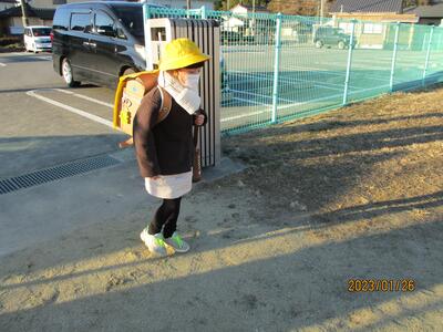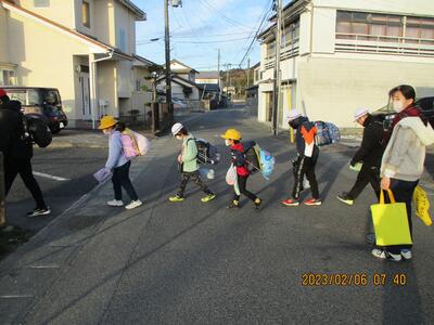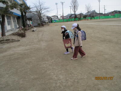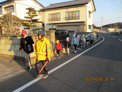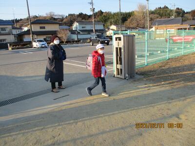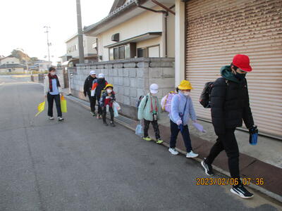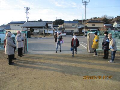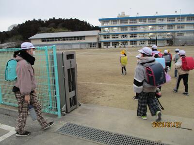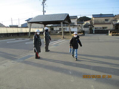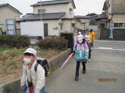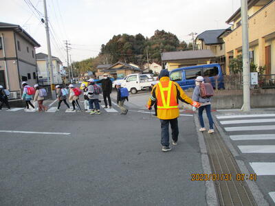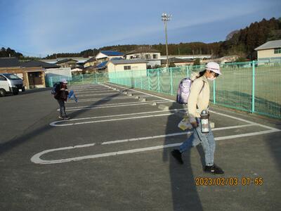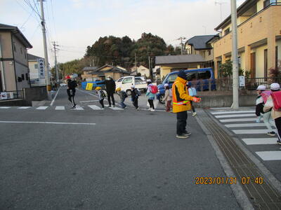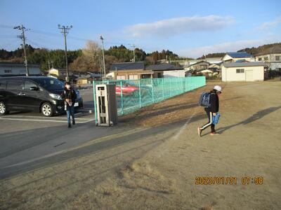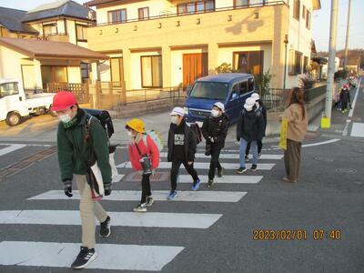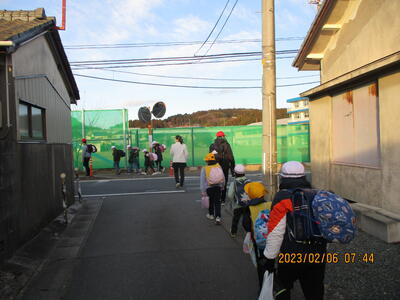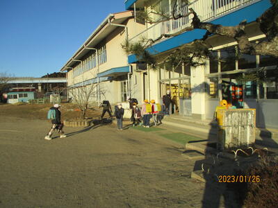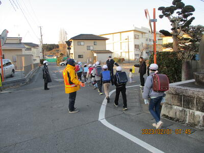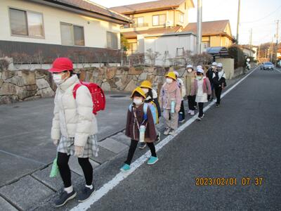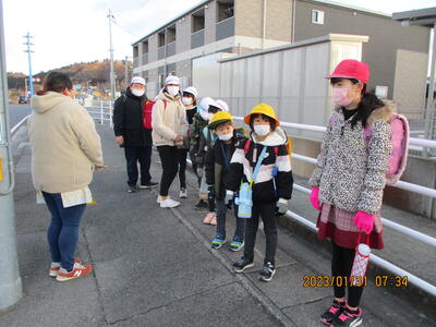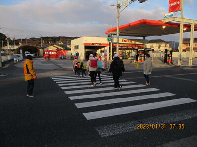 今日は立・川田方面の登校の様子です。すれ違う中学生がしっかりとあいさつをしてくれました。今日も地域や保護者の皆さんに見守られ、子ども達は安全に登校してきました。今日で1月も終わりです。2月は暖かくなるといいですね。(^^)