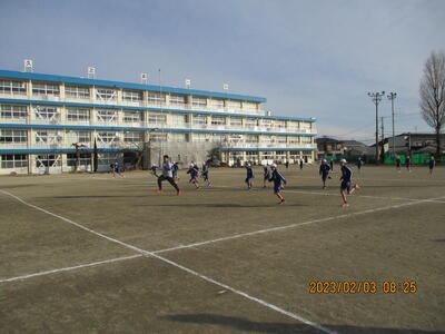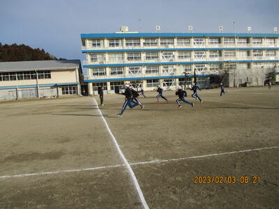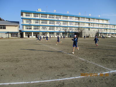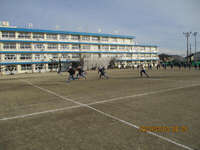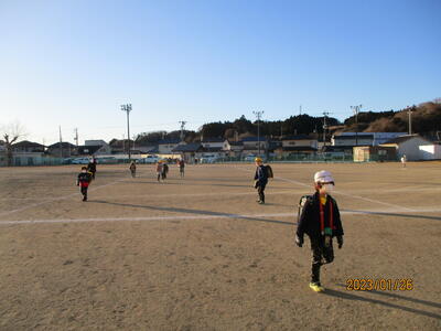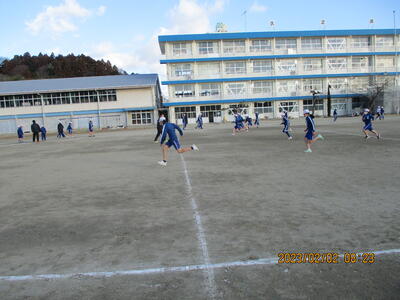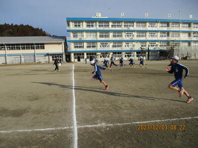 土曜日の雪が溶けて校庭のコンディションも良くなり、5・6年生はいつものように朝の体力づくりをがんばりました。最近走るフォームがかっこよくなってきました。(^_^)v