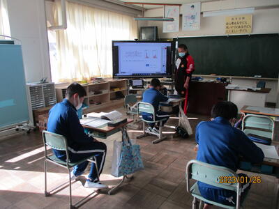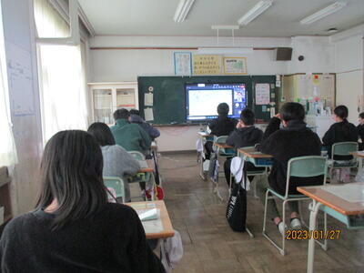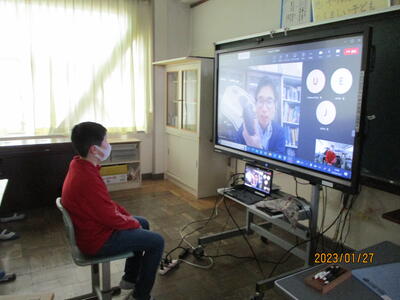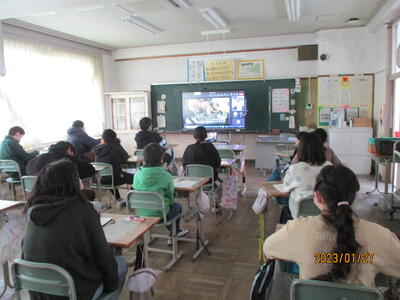 6年生は、アンモナイトセンター主催の小中連携事業の一環として、リモートで化石講座を受講しました。講師は筑波大学の田中先生で、恐竜のたまごの化石や肉食恐竜の化石の発掘等について、詳しく教えていただきました。いわき市や広野町の地層からも、もしかしたらティラノサウルスの化石が見つかるかもしれないそうです。夢のある話ですね。(^^)