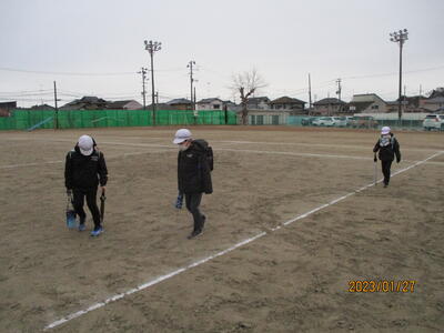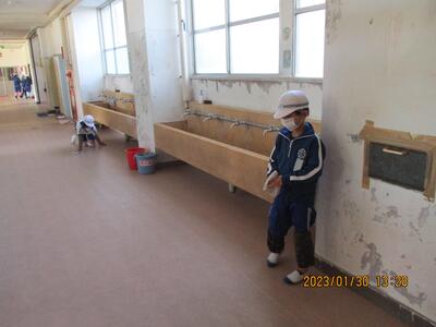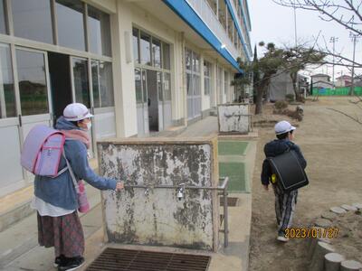 今日は校庭の土が凍ってカチカチに固まっていました。水道も凍っていたので、子どもたちが蛇口を開けてくれました。(^^)