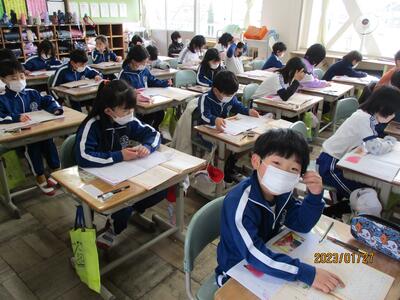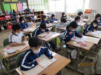 2校時目の1~3年生の授業の様子です。どの学年もしっかりがんばっていました。(^^)