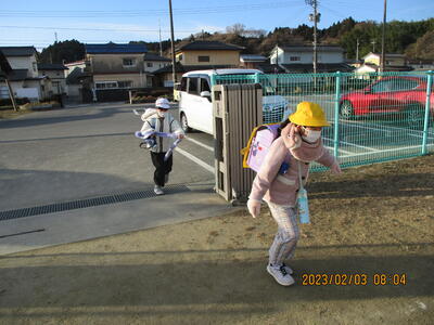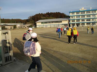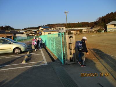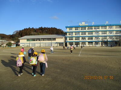 今日から2月。だんだん日の出の時刻が早くなり、子ども達が登校してくる時間帯も明るくなってきました。澄んだ青空の下、今日も子ども達は保護者・地域の方々に見守られながら安全に登校してきました。いつもありがとうございます。(^^)
