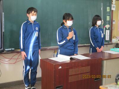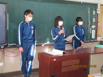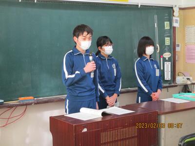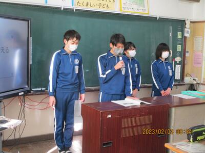 6年生は、2月5日(日)に「久之浜・大久ふれあい館」で開催される「青少年育成意見発表会」に向けて、発表のリハーサルを行いました。代表の皆さんは、緊張しながらも自分達の活動についてしっかりと伝えることができていました。本番は地域の皆様に向けて発表します。楽しんで発表してほしいと思います。(^^)