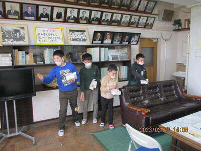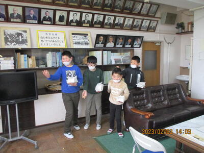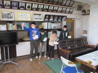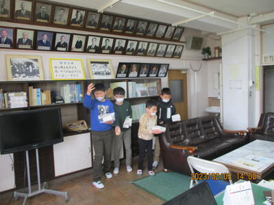 今日は節分なので、くろしお学級の皆さんが校長室に豆まきをしてくれました。(^^)